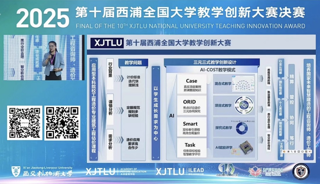 在近日揭晓的第十届西浦全国大学教学创新大赛中,山东协和学院工学院李雅琦团队凭借《“三元三式”圈层课程体系教学模式创新》荣获年度特等奖。该作品率先将AIGC(生成式人工智能)深度融入工程造价核心课程《建筑工程估价》,打造了“人机协同”的教学新范式。