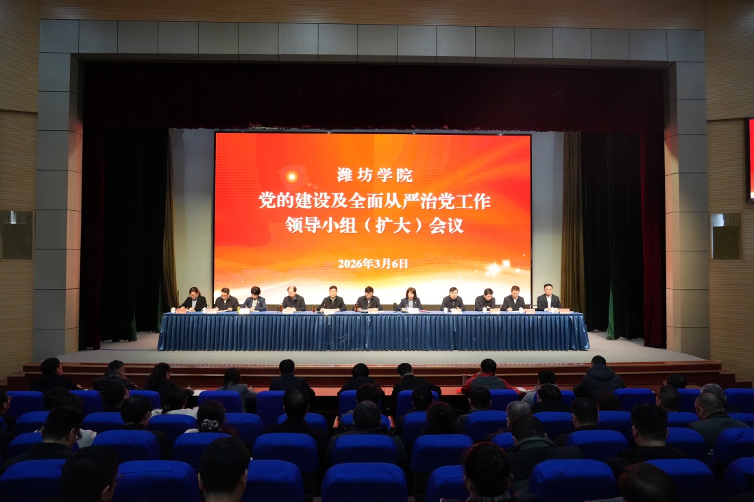 3月6日,潍坊学院召开党的建设及全面从严治党工作领导小组(扩大)会议,深入学习贯彻习近平总书记关于树立和践行正确政绩观学习教育的重要讲话和重要指示精神,传达学习中央党的建设工作领导小组会议和省委常委会会议暨省委党的建设工作领导小组会议精神,动员部署学校学习教育工作。学校党委书记来逢波作动员讲话,党委副书记、校长王霞主持会议,党委副书记王守全传达上级精神。