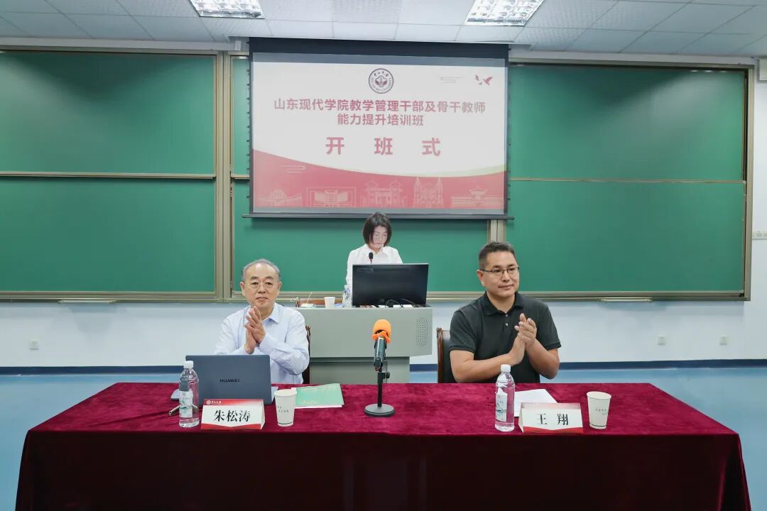 执行校长朱松涛出席并作动员讲话。他以“问道康乐园,赋能新现代”为主题,深刻阐述了本次培训的重要意义。当前高等教育正经历深刻变革,对高校管理者和教师提出了更高要求。作为学校发展的“关键少数”和教学中坚,他对全体学员提出三点希望:一是带着问题学,做虚心的求学者;二是带着思考学,做深度的对话者;三是带着纪律行,做形象的维护者,充分展现山东现代学院严谨好学的精神风貌。