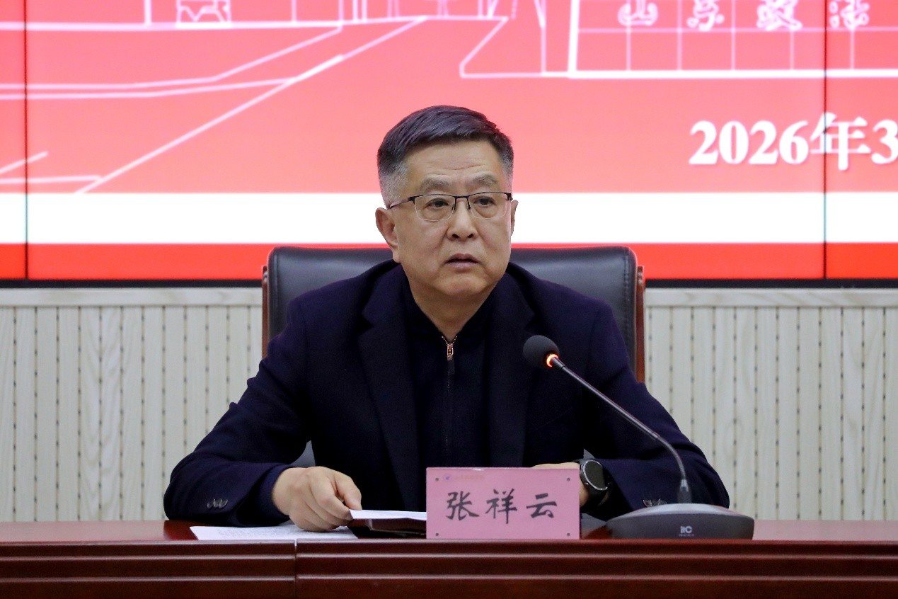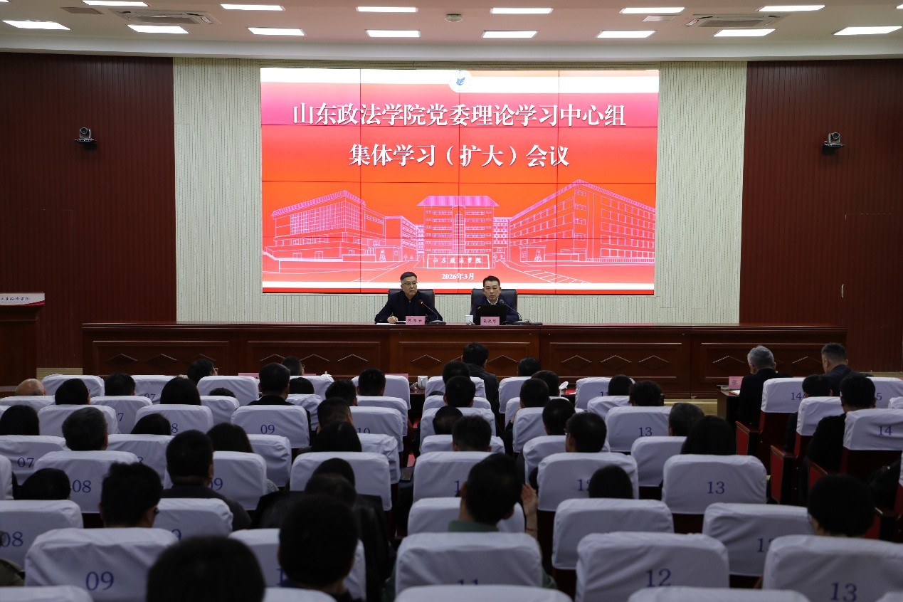 3月20日,山东政法学院在知行楼报告厅召开2026年党委理论学习中心组第3次集体学习(扩大)会议,专题传达学习贯彻习近平总书记在全国两会期间的重要讲话精神和全国两会精神,研究部署学校落实举措。党委书记张祥云主持会议并讲话。全国政协委员、院长王效彤作专题宣讲。