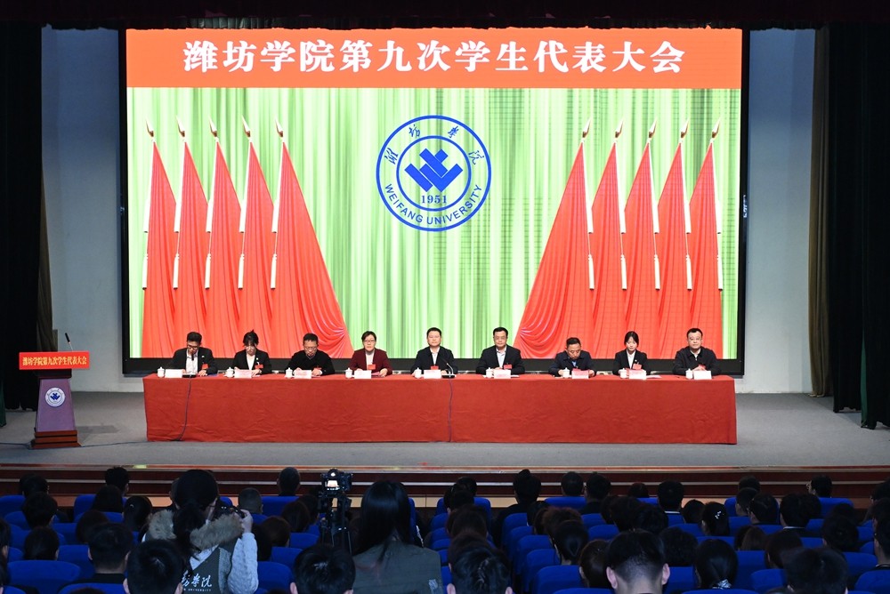 近日,潍坊学院第九次学生代表大会在图书馆报告厅召开,学校党委委员、副校长任立春出席开幕式并讲话。党委委员、组织部部长赵加强,党委委员、宣传部部长张晓静出席开幕式。