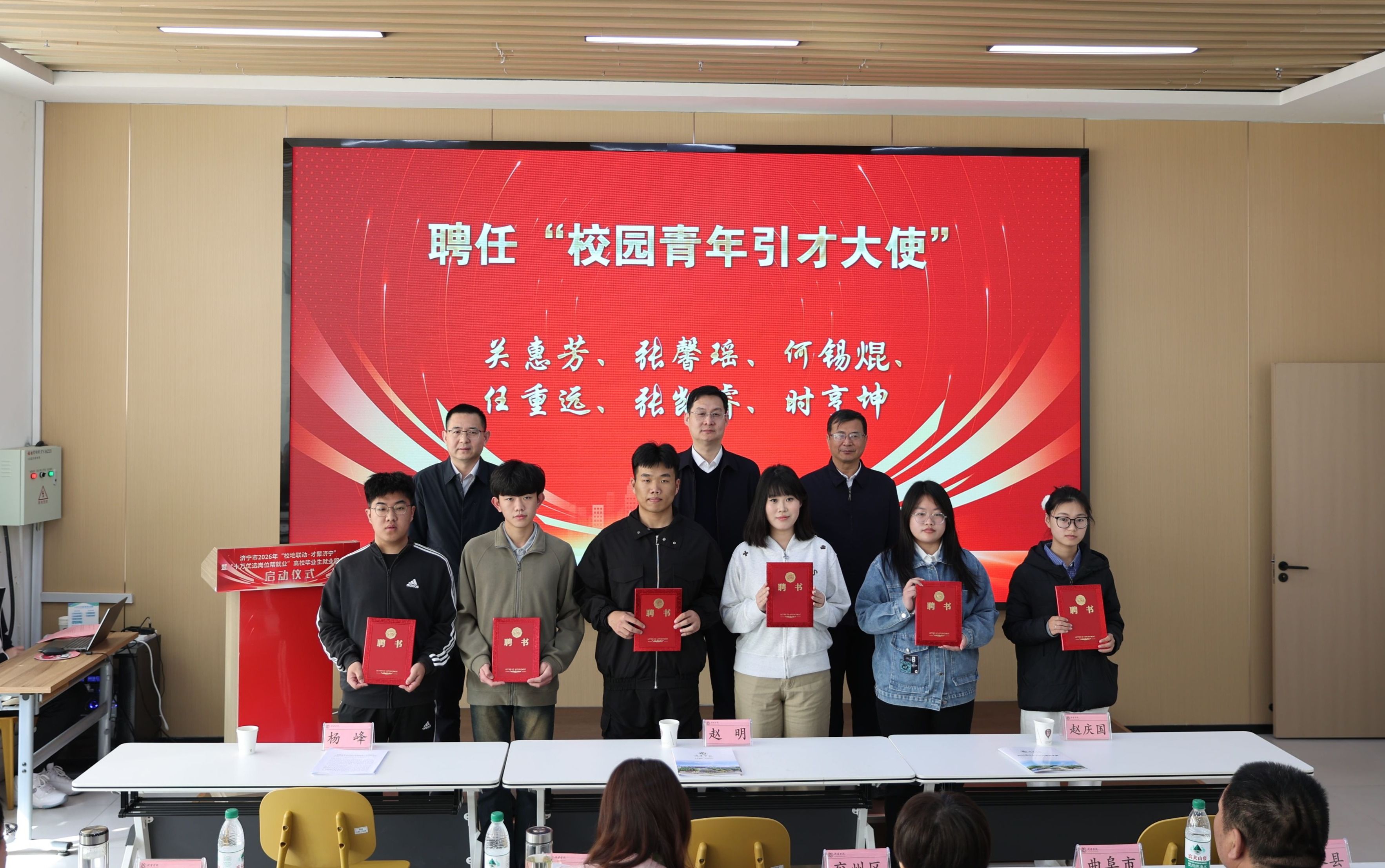 启动仪式现场,还聘请了6名学生代表为济宁市“校园青年引才大使”,随后全体参会人员实地参观了大学生就业创业赋能中心和工程训练中心。