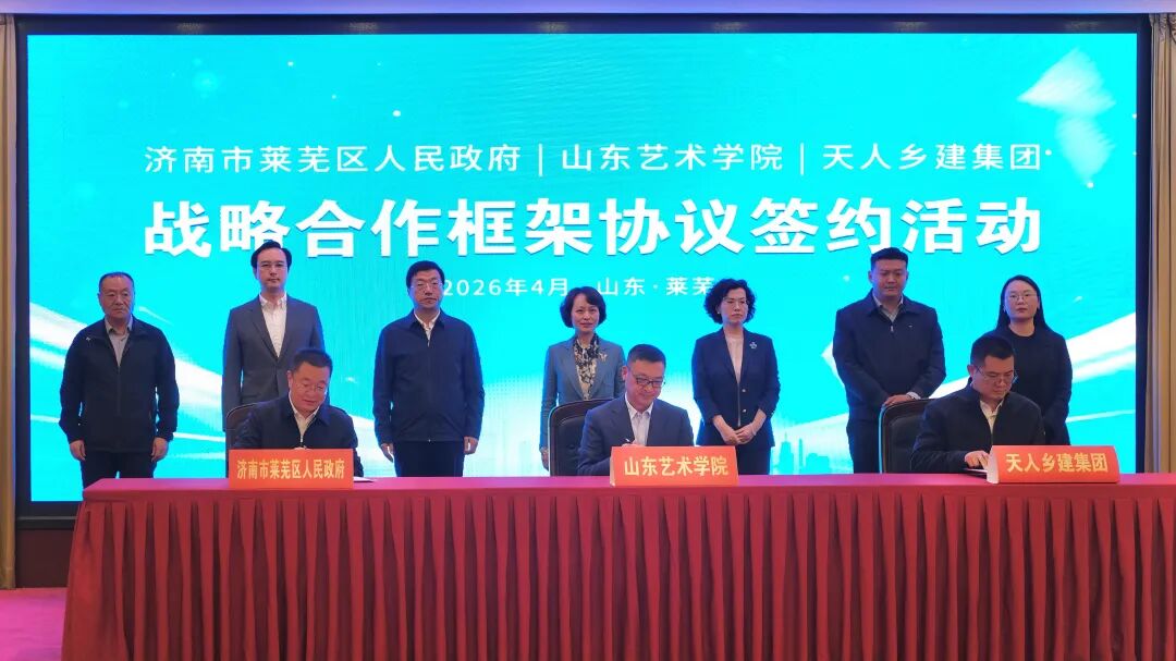 4月7日下午,山东艺术学院与莱芜区、天人乡建集团在雪湖花园酒店举行“艺术乡建合作发展战略框架协议”签约仪式。山东艺术学院党委书记徐梅,莱芜区委副书记、区长李光辉,天人乡建集团董事长孙汉雷出席活动并致辞。莱芜区区委常委、办公室主任弭学峰主持签约仪式。