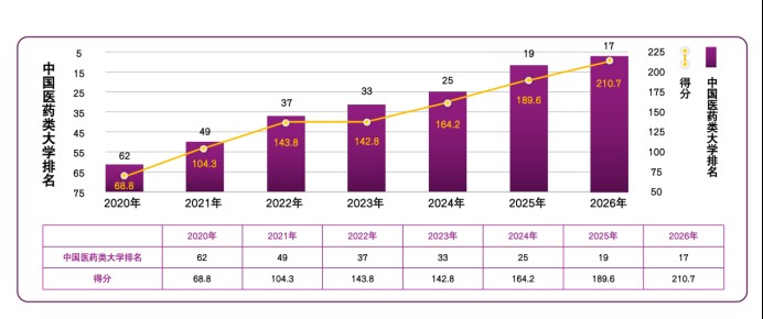 校(院)2020-2026年度排名得分和中国医药类大学排名情况