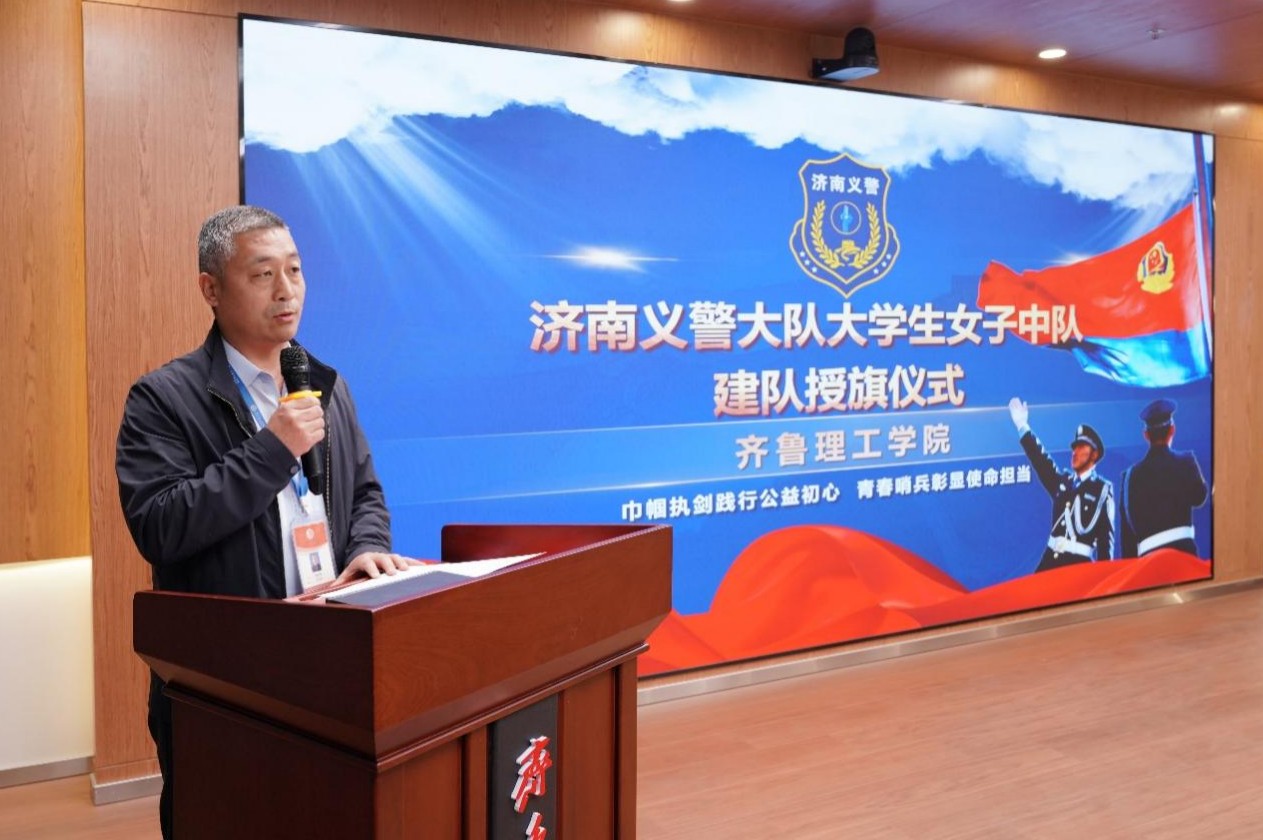 4月8日下午,济南义警大队大学生女子中队建队授旗仪式在齐鲁理工学院稷下楼隆重举行。济南义警大队代表、齐鲁理工学院副校长赵庆勇及新闻与传播学院班子成员齐聚现场,共同见证全国首支大学生女子义警中队成立,共探校地协同育人与平安济南建设新路径。