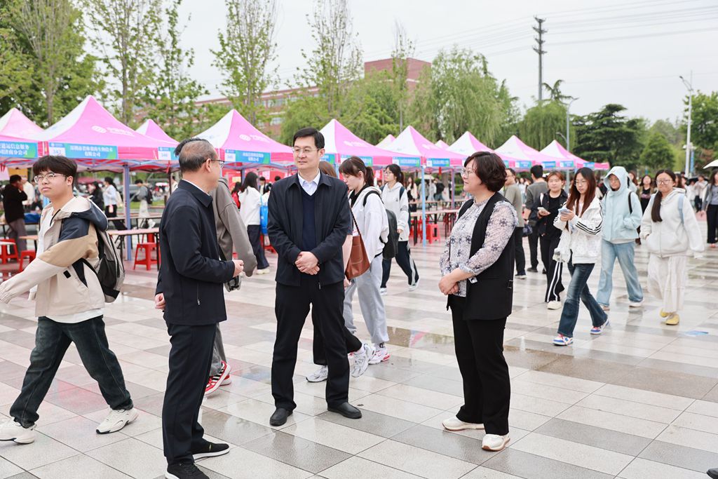 4月16日,“就选山东 职等你来”2026年省级校园招聘活动济宁市综合类专场暨济宁学院毕业生校园招聘会在校本部餐厅广场举办。校党委委员、副校长赵明现场开展调研指导。