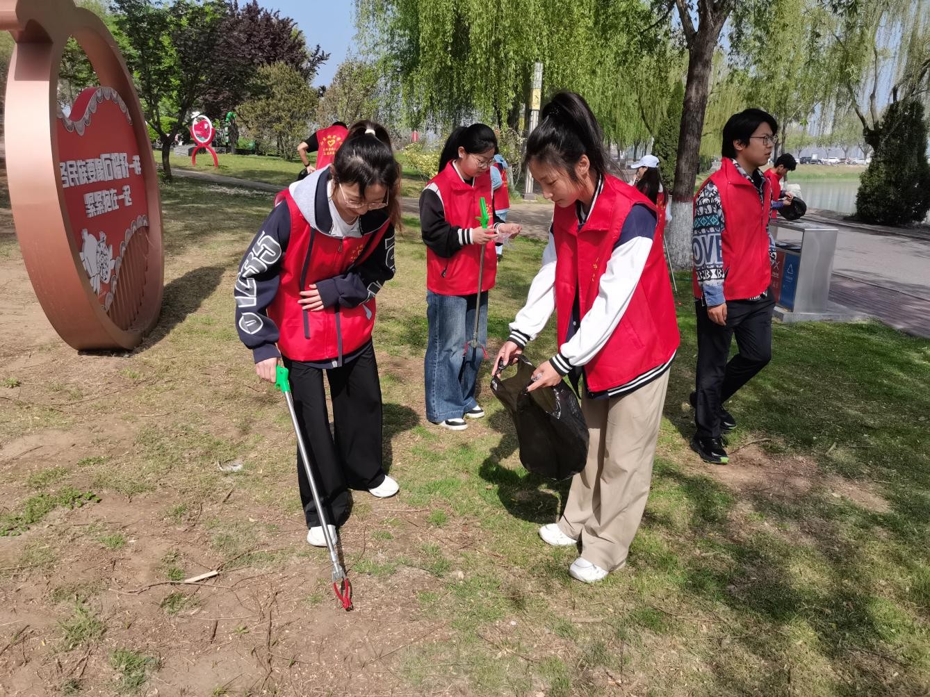 理论入脑入心,实践见行见效。宣讲结束后,志愿者们化身生态守护者与民族团结宣传员,手持清洁工具,在主题公园开展环境卫生整治。大家分工协作、干劲十足,认真清理步道杂物、捡拾绿地垃圾、擦拭公共设施,以实际行动守护绿色生态、美化家园环境。