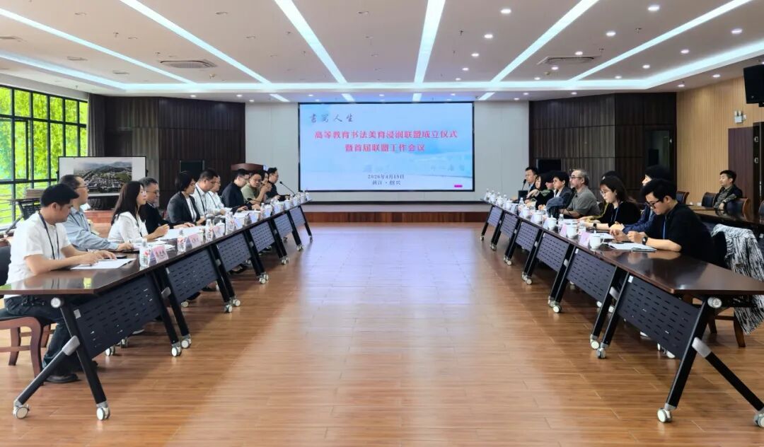揭牌仪式后,联盟首届工作会议在绍兴大学兰亭书法艺术学院召开。全体代表审议通过《“书写人生”——高等教育书法美育浸润联盟章程(草案)》,明确联盟实行轮值秘书长制,秘书处常设于绍兴大学兰亭书法艺术学院。与会代表围绕完善协同工作机制、对接国家文化发展战略、搭建校际优质资源共享平台、拓展学生书法实践基地、推动书法美育海外传播与乡村普及等重点工作深入交流,提出多项实施建议。