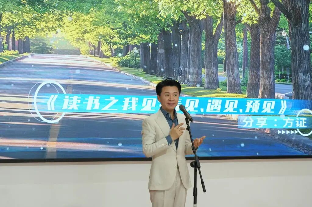 一曲《但愿人长久》的深情演唱后,共青团中央阅读大使、烟台“最美领读者”、雅是读书会创始人方证以“读书之我见:看见、遇见、预见”为主题进行主题演讲。他通过分享自己分享独到的阅读心得与成长感悟,用鲜活的阅读故事、实用的阅读方法,引导在场师生读懂阅读的意义,掌握高效阅读的技巧,鼓励大家以阅读为翼,在文字里丈量山河、丰盈自我,让阅读成为伴随青春前行的生活习惯。