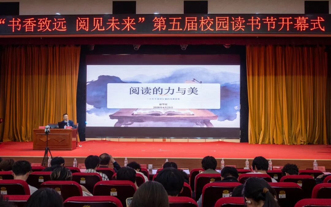 李梅松在致辞中讲到,阅读是传承文明、启迪智慧的重要途径,更是涵养品格、培育时代新人的关键抓手,希望全体师生以读书节为契机,养成爱读书、读好书、善读书的习惯,在经典中汲取养分,在阅读中增长才干,让书香成为校园最亮丽的文化底色。