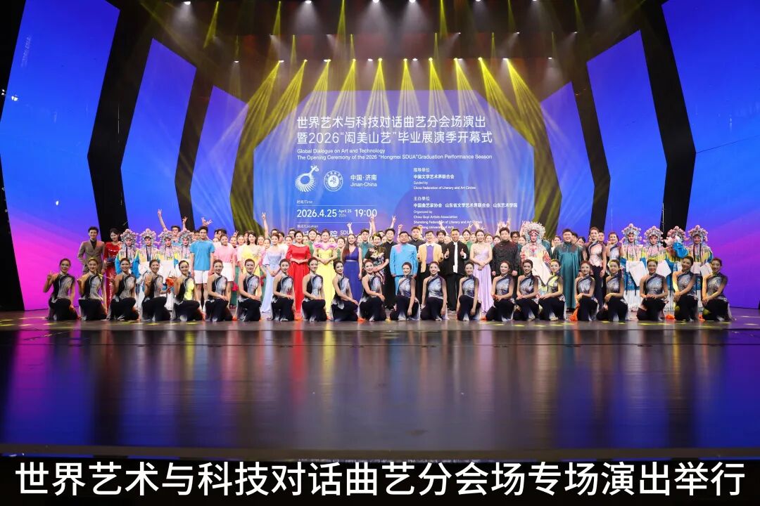 25日晚,一场由曲艺名家和山东艺术学院2026届毕业生联袂上演的2026世界艺术与科技对话曲艺分会场专场演出在山东艺术学院长清校区大剧院精彩上演。9个巧妙编排并结合现代舞台科技的节目陆续登场,为与会的中外专家学者奉上了一台艺术与科技的盛宴。