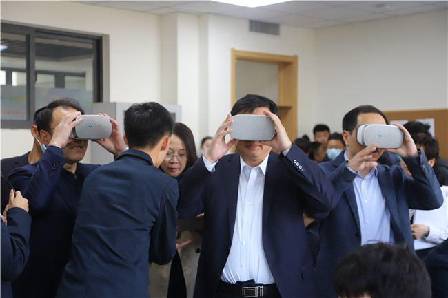 紧接着,领导们漫步在二中校园,进入了青岛二中科创中心参观。青岛二中目前已建成创新实验室12个,在建创新实验室11个,创新课程覆盖人数达800人。同时,青岛二中还依托创新实验室、创新课程,联合中国海洋大学、中科大海洋研究所等17个基地开展学术素养提升计划,聘任导师200余人,参与人数达3200人。二中通过创新人才培养体系,全面引导学生参与一项科技创新活动,通过课程、实验室、课题、比赛等平台,使每位学生均能实现“人人有课题,人人有项目,人人有成果”。