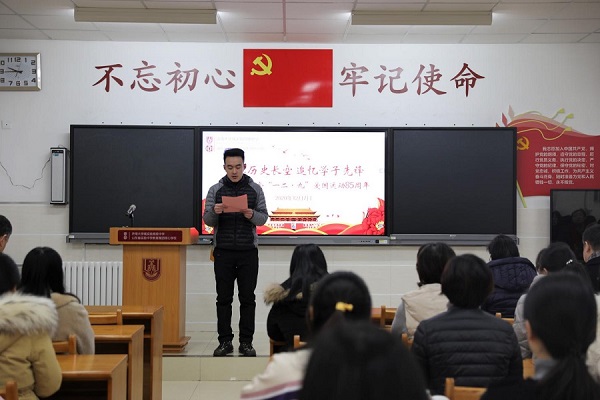 中国教育在线讯 在“一二·九”爱国运动85周年纪念日到来之际,为铭记历史,引领至善师生继承弘扬革命先辈爱国情怀,提升其以家国兴亡为己任的精神气节,大学城实验举行“穿越历史长空、追忆学子先锋”主题升旗仪式,教师会场由团委负责人郝孝真主持,学生会场由团总支书记石佳文主持。