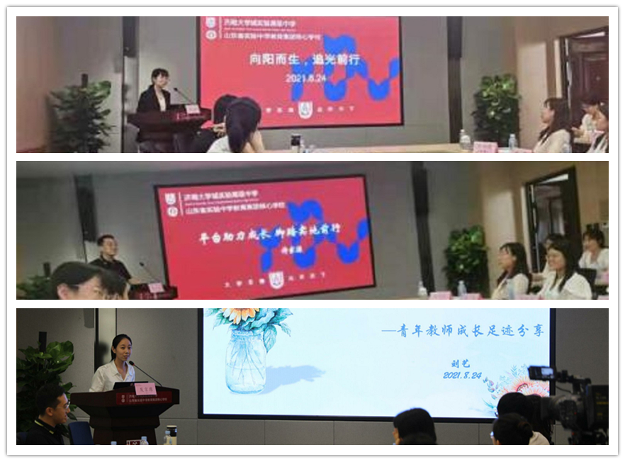 优秀青年教师代表李桢、许家源以及刘艺分别以《向阳而生,追光前行》、《平台助力成长,脚踏实地前行》及《满载希望,携手成长,逐梦星光》为主题作了分享。他们对职业的敬重、对学生的关爱以及自身的快速成长,让全体新入职教师找到了努力的方向。