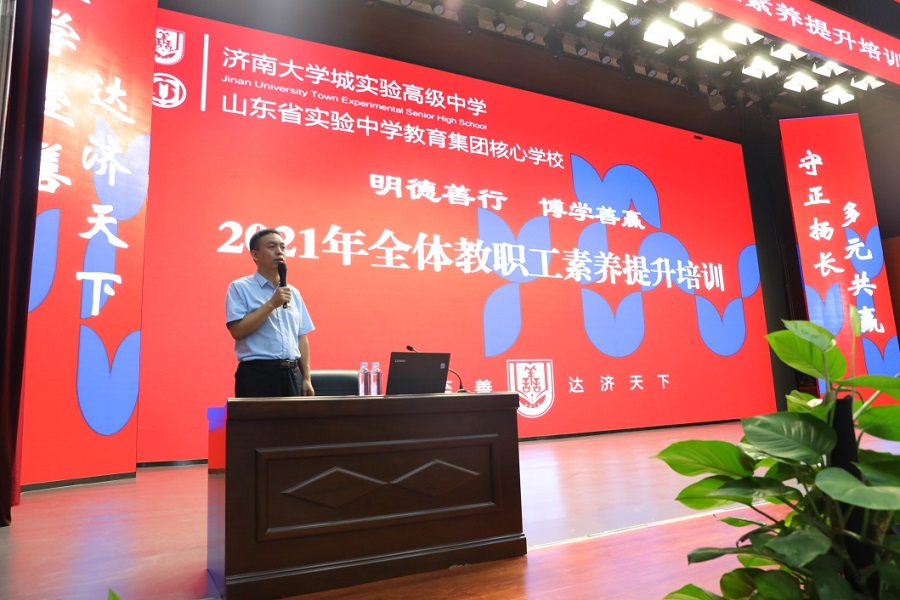 为切实提升教师职业综合素质,促进教师的专业成长,努力打造一支业务素质精、教育技能强、教师基本功硬的教师队伍,大学城实验在8月25日上午举行了全体教职工职业素养提升培训。本次培训由业务校长郭福祥主持,名师研发部主任张继平、山东省教科院教研室主任王运贵分别做报告。