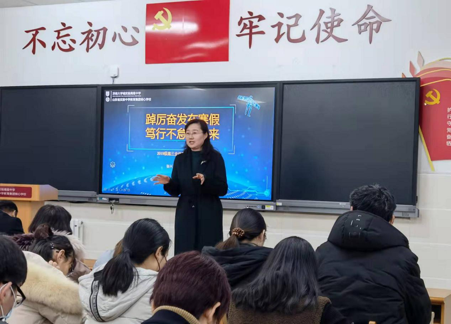 接着,王学勇主任召开本学期第五次教育教学工作会。首先表扬教师们拼劲足、工作实、教研真、评教好,然后重点分析了本次期末考试的情况,并对寒假工作进行了详细部署。经过反思与分析,教师们明确了方向,理清了思路,调整好状态,准备再出发!