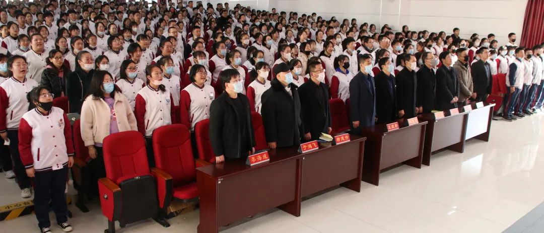 伴随着庄严激昂的国歌声,“决胜高考 ,圆梦六月,让我们一起向未来”2019级成人典礼暨高考冲刺誓师大会正式拉开了帷幕。