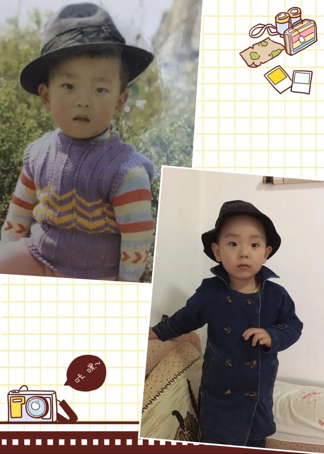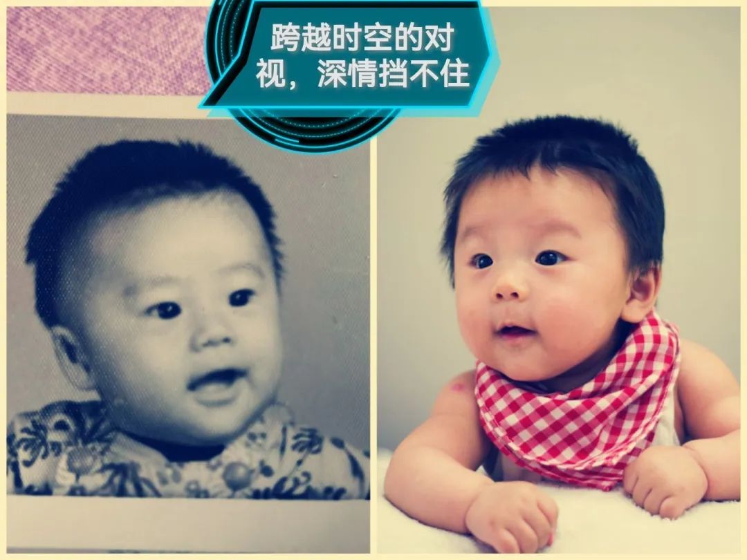 为了给爸爸们献上一份特殊的节日祝福,同学们精心设计了自己与父亲童年照的同框照片。