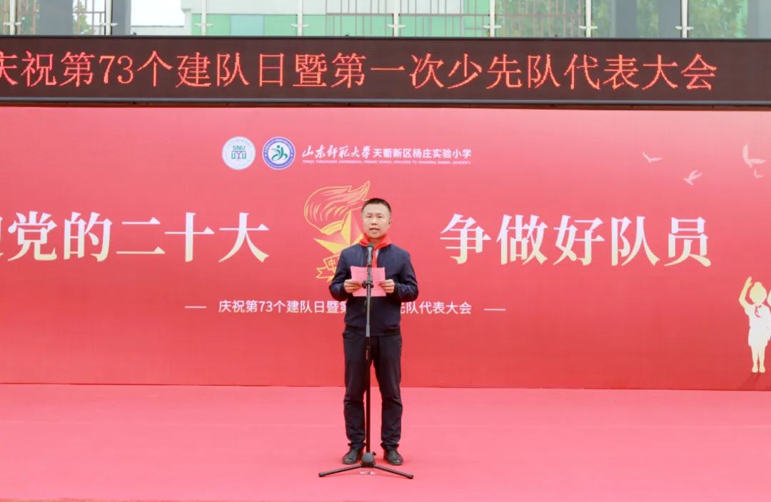 10月13日,在中国少年先锋队第73个建队日到来之际,山东师范大学天衢新区杨庄实验小学隆重举行“喜迎党的二十大 争做好队员”庆祝第73个建队日暨第一次少先队代表大会。