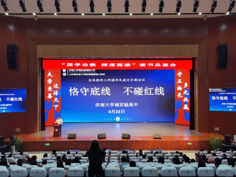 近日,济南大学城实验高中为全面落实上级文件精神,引导广大教师坚定为党育人、为国育才的初心使命,努力打造一支政治素质过硬、业务能力精湛、育人水平高超的高素质教师队伍,在全校开展了以“明德善行、博学善赢”为主题的师德师风专项教育活动。