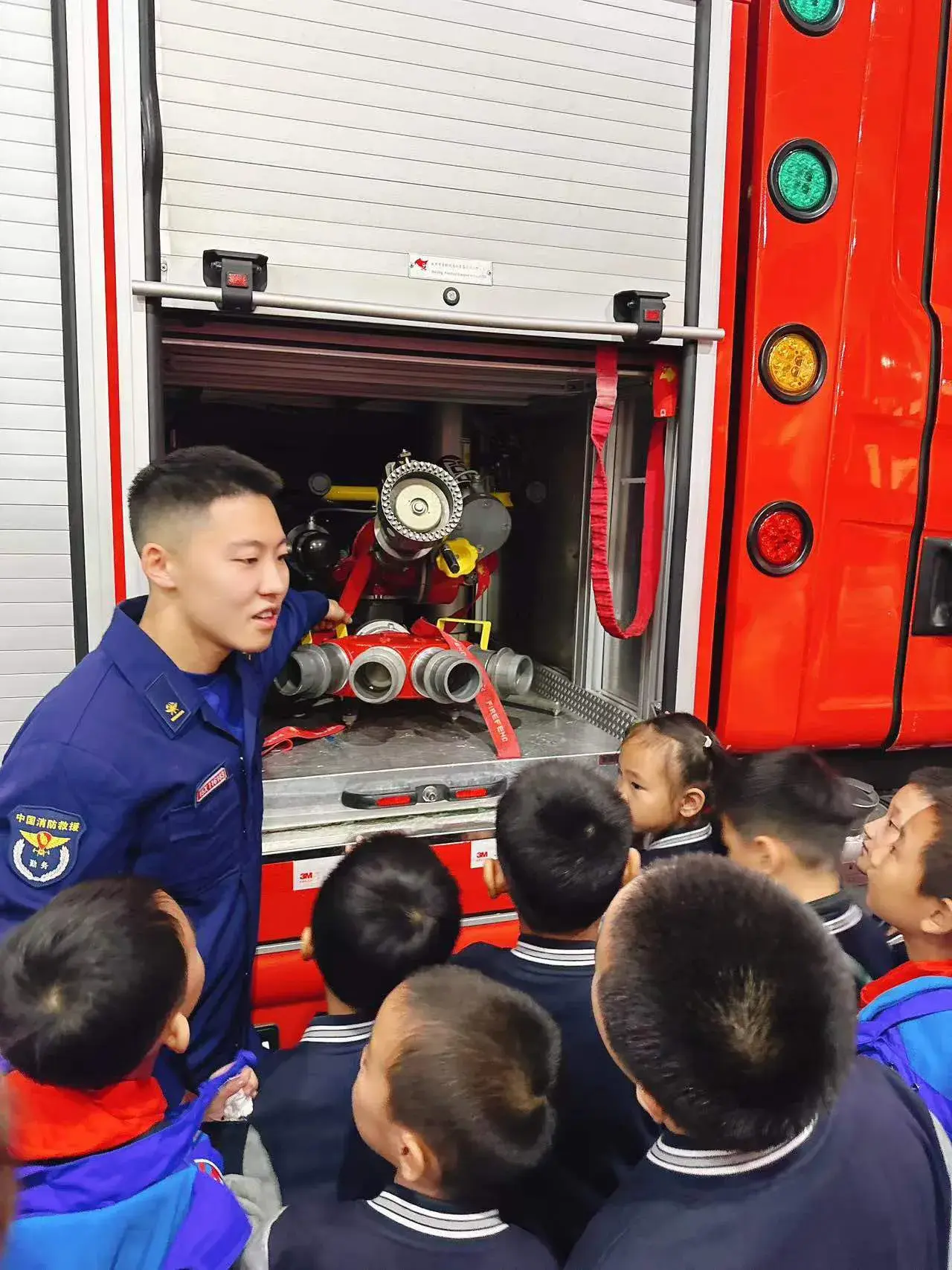在消防员的引导下,学生们参观了消防车辆和消防器材,了解了消防设备的用途和特点。他们还观摩了消防员进行日常训练,如攀爬绳索、灭火演练等,感受到了消防员的专业技能和勇气。此外,学生们还参加了消防员组织的互动游戏,如消防安全知识问答、灭火器使用演示等,进一步增强了他们的消防安全意识。