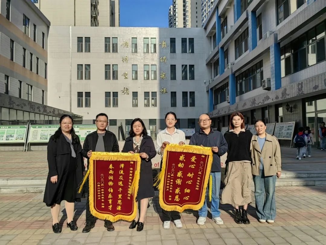 济南高新区伯乐实验学校家长向老师和学校赠送锦旗