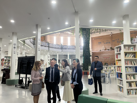 欢迎会后,郑玉香带领参访团参观了校园,来宾通过参观大学堂、大雅厅和图书馆,感受到了济南大学城实验高级中学浓厚的书香气息与多元化办学特色,并且旁听了几堂具有跨文化交际意义的英语课,至善学子们也与来宾进行了充分而友好的交流。贝尔珀中学的代表们对于学校的文化建设以及学生素质赞不绝口,并向郑玉香赠送邀请函,希望在未来能够开展更多的互访交流活动。
