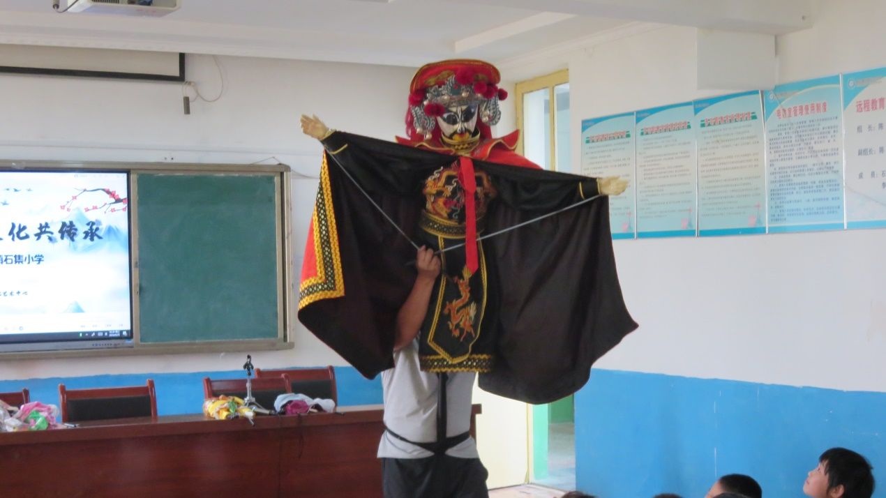 泰安市崔氏唢呐第六代传承人崔文龙老师,带来了“木偶”表演,让每位同学都能体验非遗“木偶”的魅力与传承。同学们兴高采烈、积极参与,试着“表演”,与木偶零距离接触。学习活动在杖头木偶“变脸”的氛围中结束。