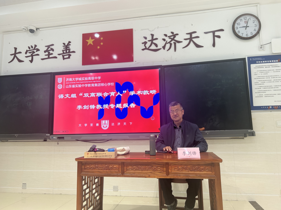 为深化“双高联合育人”机制,提升“三新”背景下语文教学实效,2025年4月11日上午,济南大学城实验高级中学语言与文学教研部(语文)特邀山东大学文学院李剑锋教授莅临指导,开展“中学生的审美教育与写作训练”专题教研活动。活动由语文教研组组长孙立新主持,全体语文教师参与研讨。