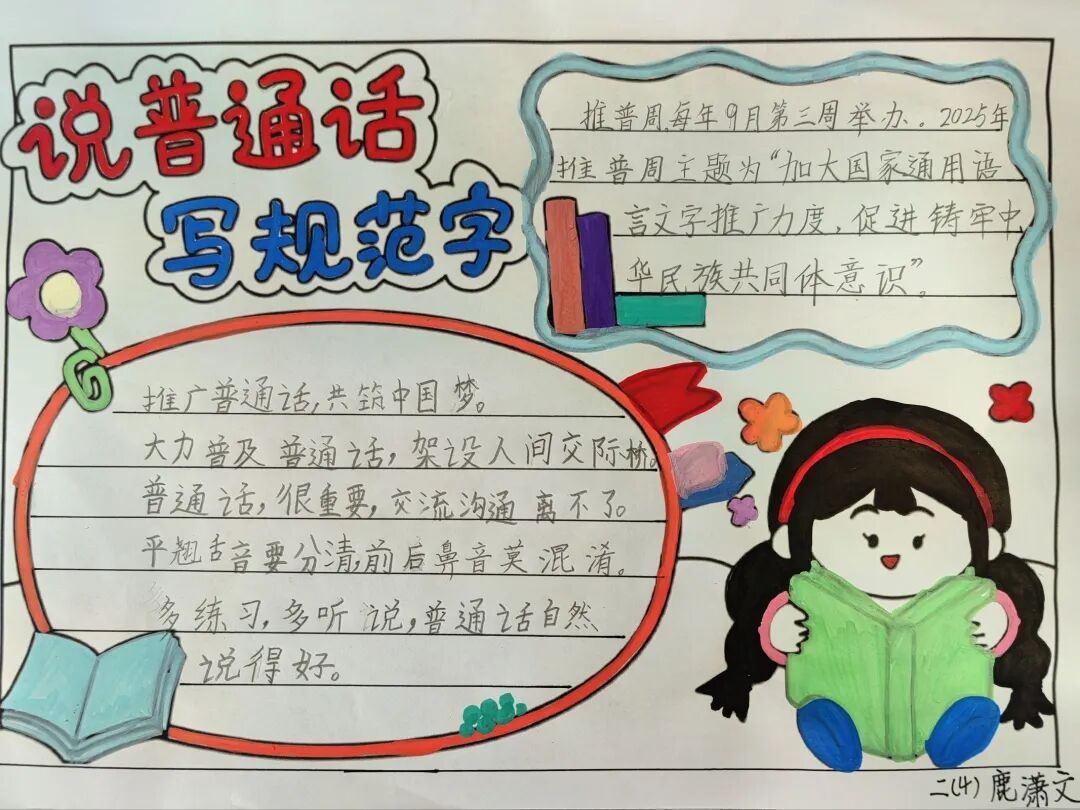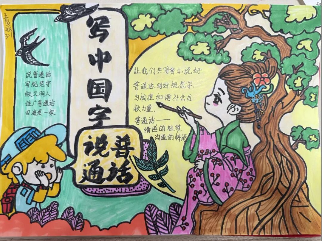 各班级组织开展主题班会,举办推普周手抄报评比。同学们围绕“什么是普通话”“为什么要推广普通话”“如何写规范汉字”等话题进行深入探讨与知识普及,不仅提升了语言运用能力,也增强了公共服务意识。