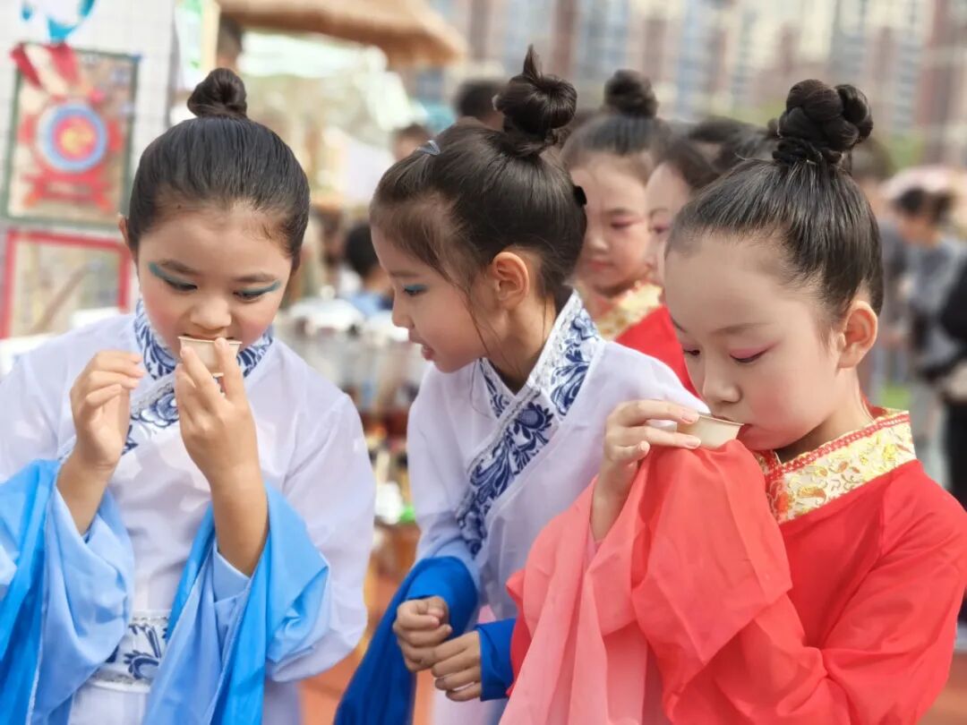 学生志愿者们则化身“小小茶文化使者”,他们主动走出摊位,热情邀请临近摊位的老师、家长和同学们前来品茶、交流。他们稚嫩的脸上洋溢着自信的笑容,一举一动间展现出对传统文化的热爱与自豪。正如伯乐实验学校任晓燕校长所言:“共同体活动开启时我们就锚定学生进步,学校的课程和活动设计给足了方向。过程中通过小组合作引导孩子学会互助,不少内向孩子变得主动分享;家长特别给力,从旁观到主动参与家校沟通。现在大家看到的就是家长在共同体活动中,带领学生学习体验茶艺的情景再现。”当传统文化的根脉在少年心底悄然扎根,当非遗技艺的光华在他们的指尖流转,学校“学生成长共同体”正以梦想同“萌”之姿,书写着家校社共促成长的和谐篇章。