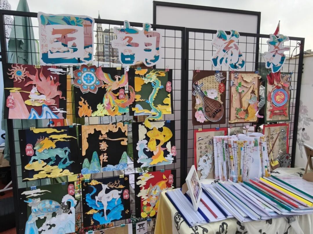 摊位之间,琳琅满目的非遗手工作品与书画作品令人目不暇接,这些都是伯乐少年们暑期非遗探究的心血结晶,亦是他们团结协作、共同探索文化与追求美好未来的最好呈现。剪纸年画,色彩浓艳,晕染出浓浓的年节意趣;京剧脸谱,线条勾勒,演绎着中华戏韵的独特风华;竹篾在巧手中翻飞,编织出壮丽的中华山水;滚烫的糖汁在艺人手中凝固,化作一个个栩栩如生的神奇瑞兽。同学们执笔刻木、挥毫泼墨,在亲身体验中深植对中华优秀传统文化的热爱,更在实践中练就了敏锐的观察力与非凡的创造力。低年级的小同学们也不甘示弱,他们用充满魅力的线条描绘着七彩斑斓的生活,一幅幅作品定格了最纯真的童心与最纯粹的快乐。