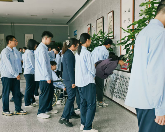 升旗仪式后,师生们移步大学堂,参观国庆主题书画展览。一幅幅笔墨丹青中,有对祖国壮丽山河的描绘,有对革命先辈的缅怀,有对新时代发展成就的赞颂;一张张书画作品里,凝聚着学子们对祖国的深情,展现着青年一代的责任与担当。大家在书画间驻足观赏、交流感悟,在艺术熏陶中进一步砥砺爱国情怀,坚定报国志向,立志以实际行动弘扬民族精神与时代精神,将个人理想融入国家发展大局,用青春力量汇聚起共襄强国盛举、共筑复兴梦想的磅礴动能。