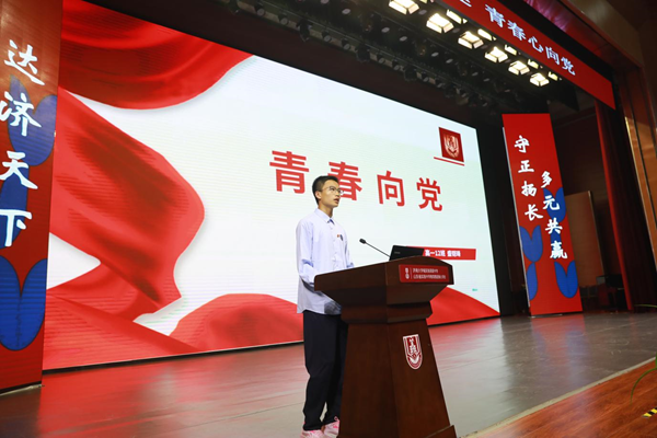 济南大学城实验高中高一高二学生团员以青春之名赴党之约,让红色薪火在校园里代代相传。