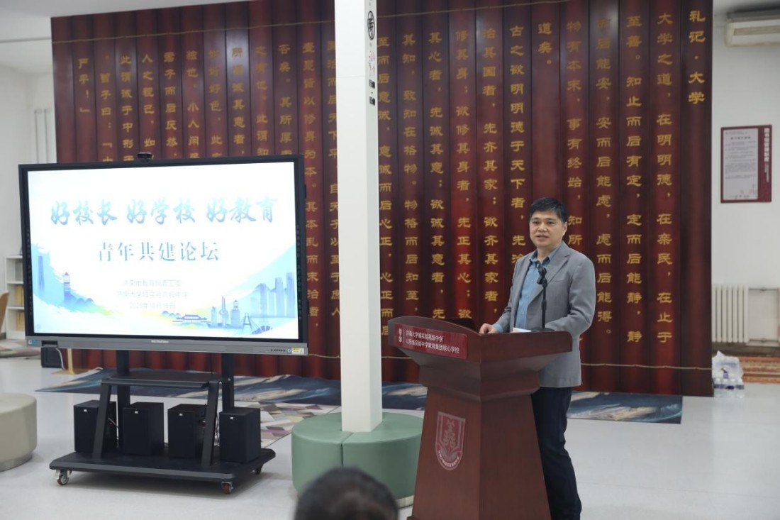 10月15日下午,济南市教育局青年工作委员会走进济南大学城实验高级中学共话“好校长、好学校、好教育”,活动在学校寰宇图书馆举行。济南市教育局党组成员、副局长、青工委主任王志国等机关领导携机关青年干部代表出席,与济南大学城实验高级中学领导班子、全体干部及青年教师代表齐聚一堂,通过主题分享与讨论的形式,交流经验想法。