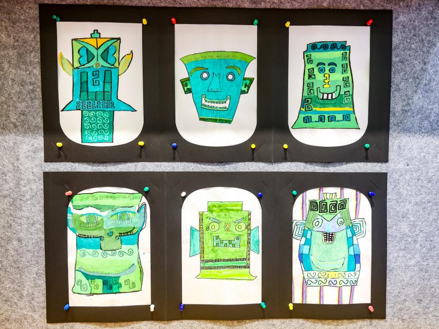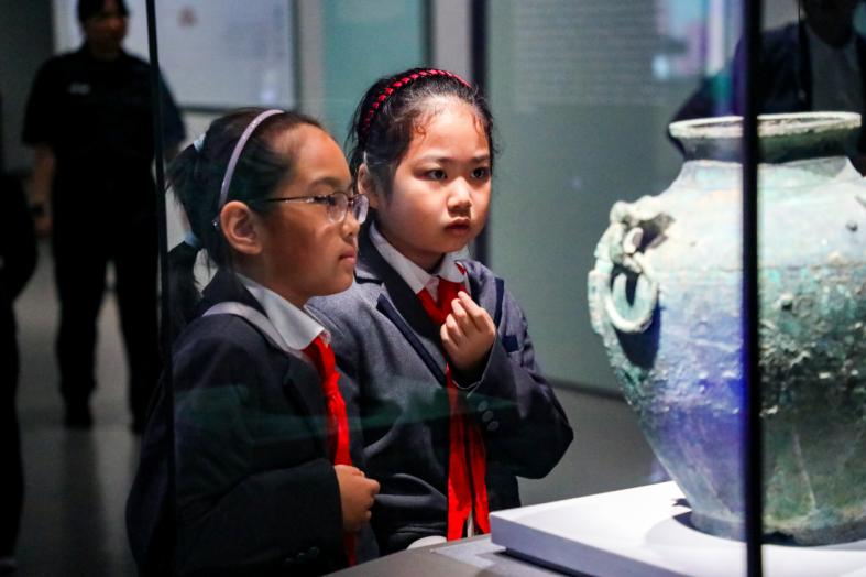 真正的探索从踏入省博开始!同学们分为五支小队,带着任务卡,在真实的文物面前观察、思考、记录,为接下来的创作积攒灵感。