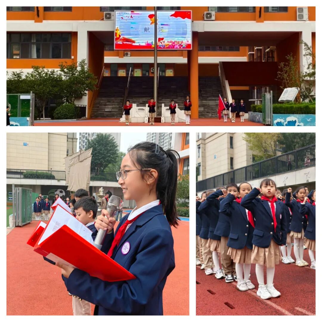 仪式在激昂的出旗曲中拉开帷幕。旗手们精神抖擞,步伐铿锵,护送着鲜艳的队旗步入会场。全场师生肃立,目光紧随队旗,心中涌动着对党的无限忠诚与对未来的美好憧憬。随后,激昂的《中国少年先锋队队歌》响彻校园,歌声中充满了少先队员们的自豪与坚定,展现了新时代少年的蓬勃朝气与远大志向。