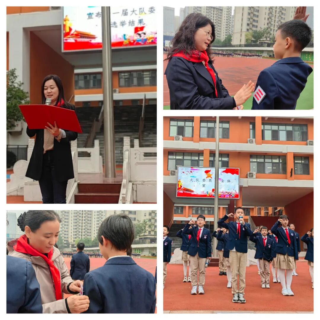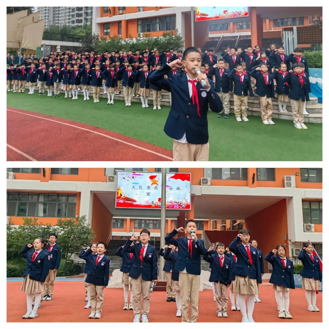 学生素质发展中心主任孔晓宣读了新一届大队委员会选举结果,新当选的大队委成员们精神抖擞地走上台前。校委会成员为他们佩戴上了大队委标志,这些徽章将伴随着他们的成长历程,见证他们的担当与付出。新一届大队委在大队长的带领下庄严宣誓,承诺将不负重托,为少先队事业贡献自己的力量。