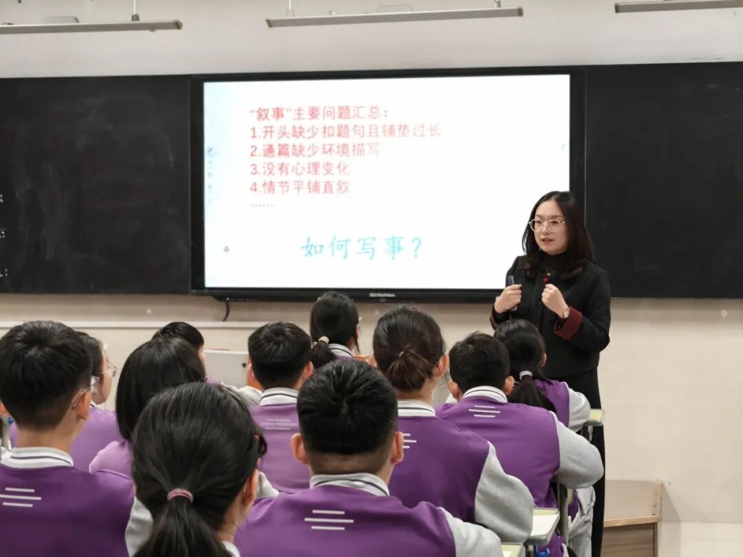 教学内容与任务:七年级周晴老师以课文《散步》为载体,设计“跟着经典学写作”任务。学生通过批注梳理记叙文六要素,赏析环境描写与心理刻画手法,并运用“三建构”模式(自主建构—合作建构—拓展建构)修改习作。课堂强调开篇点题、情节推动等技巧,辅以思维导图整合知识。