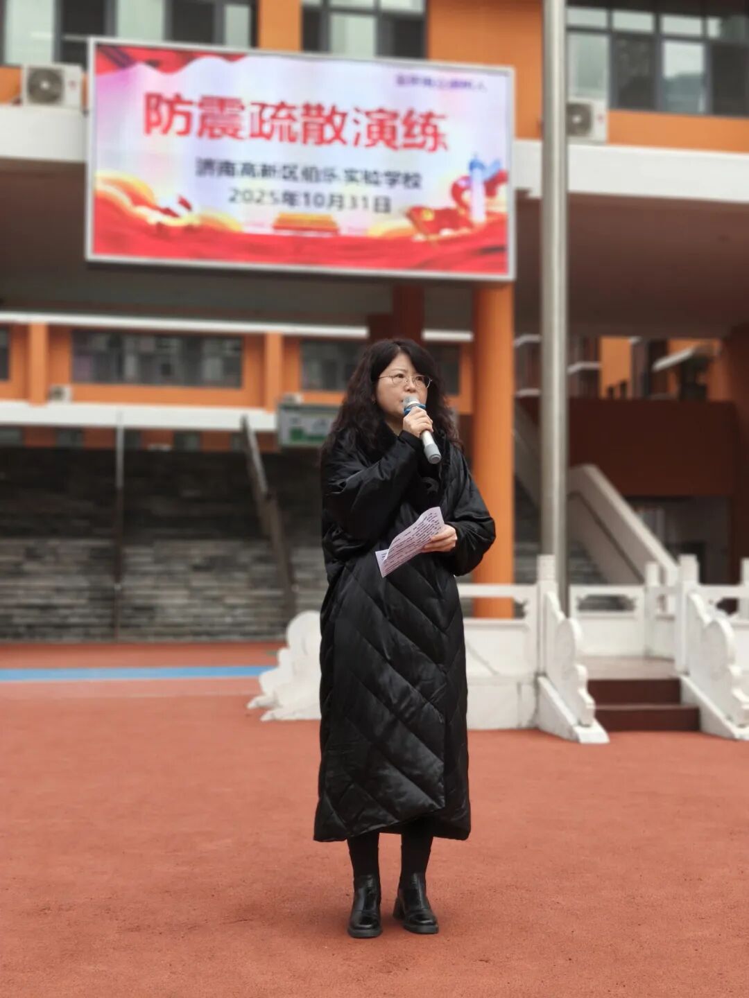 演习结束后,副校长范啸宇对本次活动进行了总结。她再次强调了防震安全逃生的重要性以及如何在逃生过程中防止踩踏事故的发生等,向学校全体师生发出了三点倡议。第一,牢记逃生知识,做到 “知行合一”,课上学的地震知识、逃生技巧,要记在心里、落在行动上。第二,保持敬畏之心,杜绝 “麻痹大意”。不要觉得 “地震离我们远”,安全无小事,一次疏忽可能酿成大错。第三,加强互助协作,展现 “师生同心”。老师要多关注学生安全,尤其照顾小学低年级同学;同学们之间也要互帮,初中同学多帮扶小学同学,身体弱的及时向老师求助,形成共护安全的氛围。