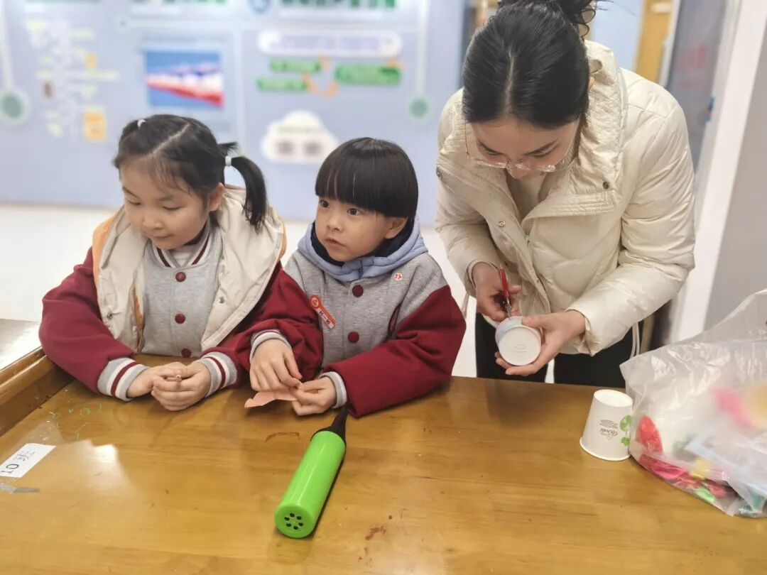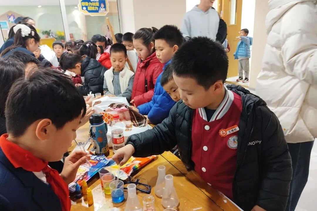 校园各处的科学小实验体验区人头攒动,“人造雪小实验”“桌面吸尘器”“龙吸水”“神奇的水”等互动实验让孩子们跃跃欲试。在家长和老师的指导下,孩子们亲手操作、仔细观察、大胆提问,在实践中解锁科学奥秘,脸上洋溢着探索发现的喜悦。
