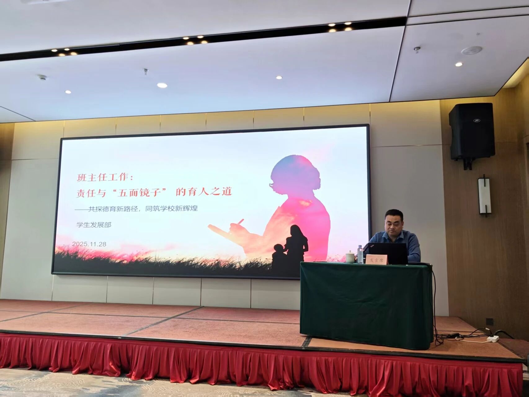 论坛的专题报告环节,教学管理部主任王学勇以“让教育有温度,让生活有甜度”为题,阐述了在教学过程中如何融入人文关怀,激发学生内在动力,实现知识传授与情感培育的和谐统一。学生发展部主任王春强则以“班主任的责任与‘五面镜子’育人之道”为主题,从德育角度深入剖析了班主任的角色定位与育人路径,强调通过有温度、有智慧的陪伴引导,让学生规范达成,快乐成长。