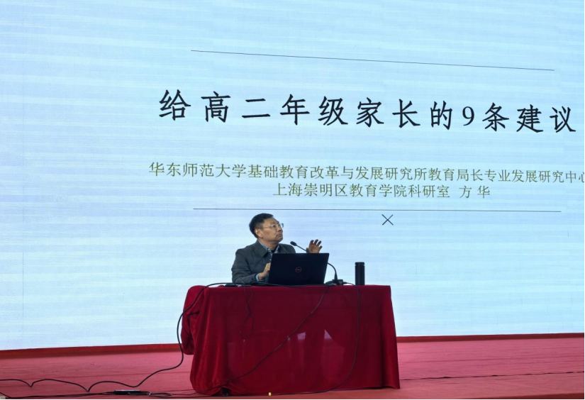 本次家长会特别邀请教育部重点社会科学人文基地——华东师范大学基础教育改革与发展研究所教育局长、专业发展研究中心主任方华,为高二学生家长带来针对性极强的9 条教育建议,为家庭教育提供专业指引。方华专家强调“示弱 + 平和 + 商量 + 约定”是高二家长与孩子沟通的智慧选择,同时提醒家长要让孩子心中有爱、有爱好,即便条件有限,也要为孩子的美好未来许下期待、创造可能。专家的分享干货满满,引发家长们的深度共鸣,不少家长认真记录要点,频频点头认同。