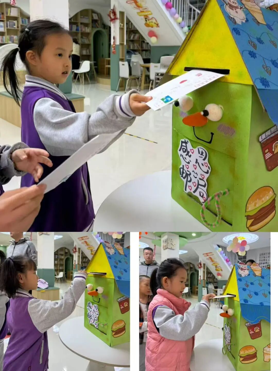 写完信后,大家小心翼翼地将信件折好,通过 “感恩邮局”,孩子们依次将信件投入信箱,脸上满是期待与郑重,仿佛在投递一份珍贵的宝藏。