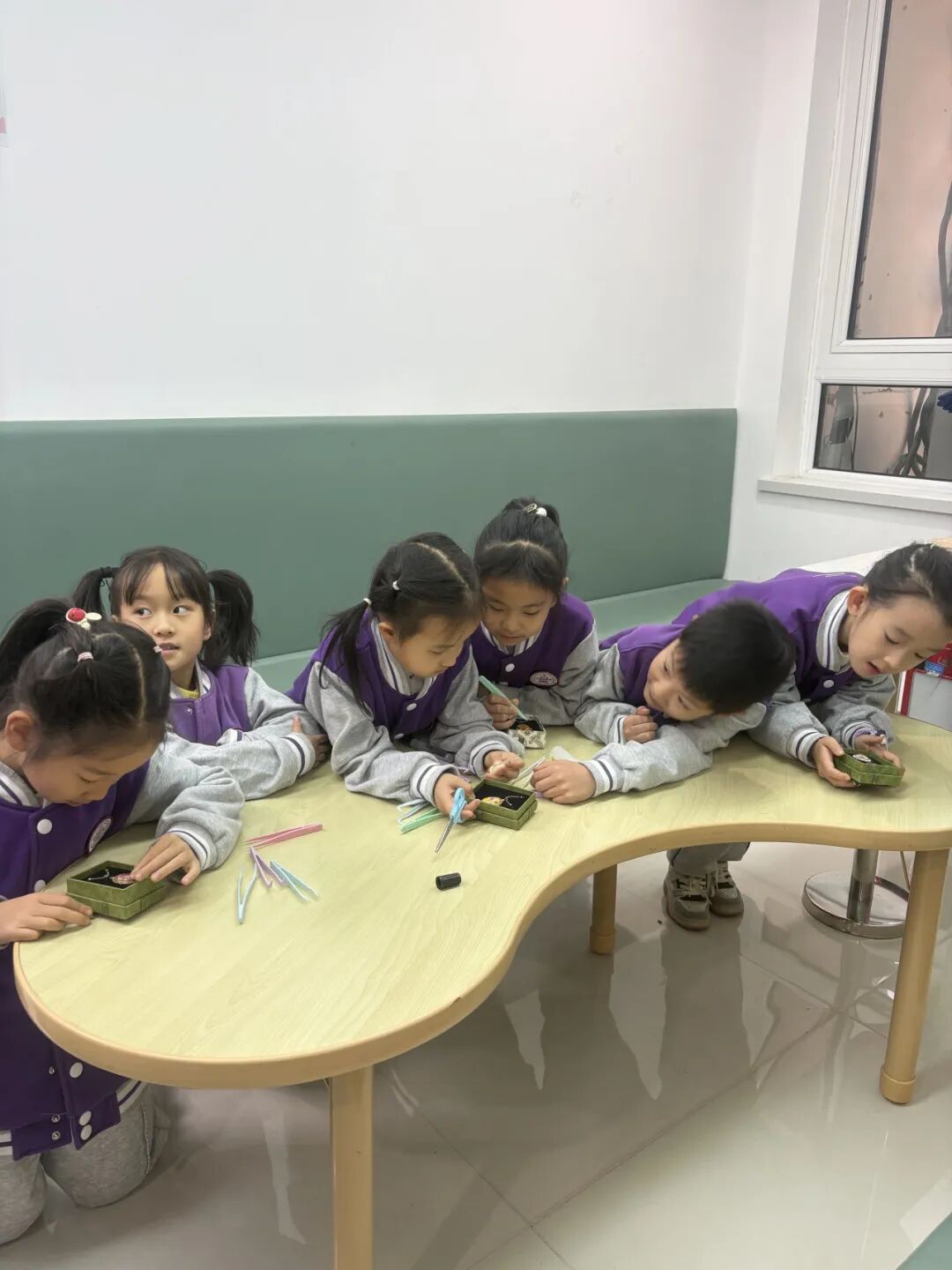 最热闹的环节当属制作感恩礼物。孩子们发挥想象力,亲手精心打造专属礼物。大家一边制作,一边小声念叨着各自礼物的特点,指尖的动作里满是欢喜,每一件作品都承载着满满的心意。孩子们在一起互相欣赏制作的礼物,脸上洋溢着灿烂的笑容。
