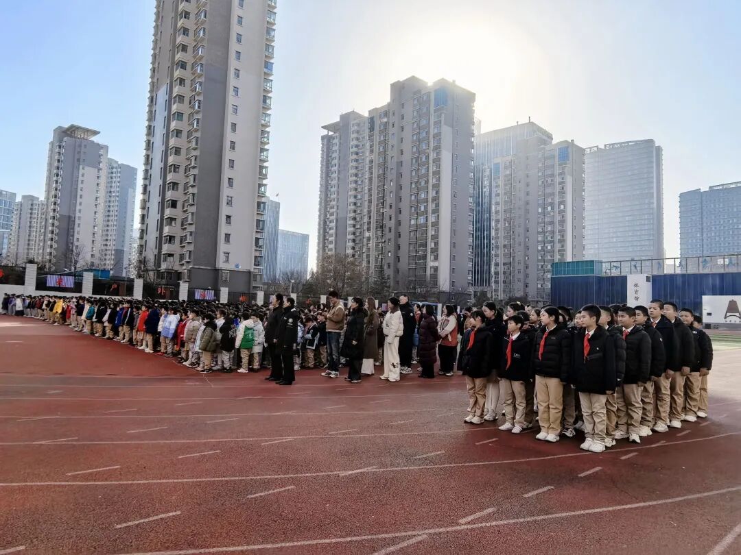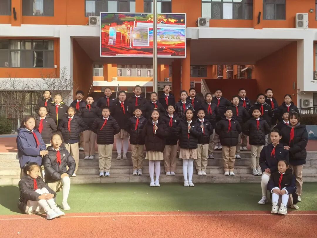 伴随着激昂雄壮的《义勇军进行曲》,五星红旗冉冉升起,少先队员敬队礼、师生行注目礼,嘹亮歌声响彻校园上空。