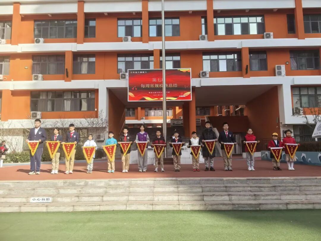 仪式尾声,少先队与学生会总结上周常规工作,流动红旗的颁发不仅是对优秀班级的表彰,更是对全体师生践行“学法明礼”要求的激励。此次升旗仪式将宪法教育、文明礼仪教育与校园文化建设有机结合,既彰显了法治的庄严力量,又传递了文明的温暖底色。