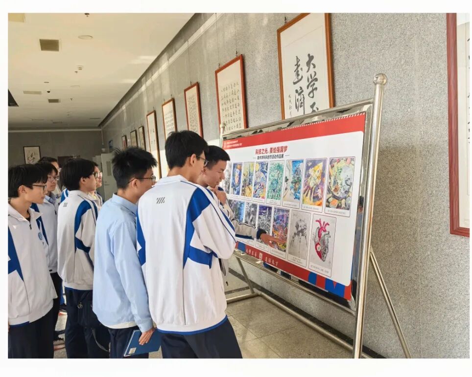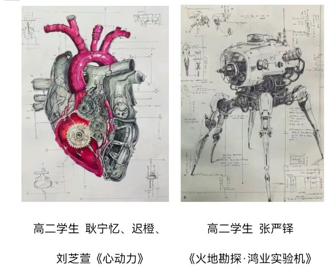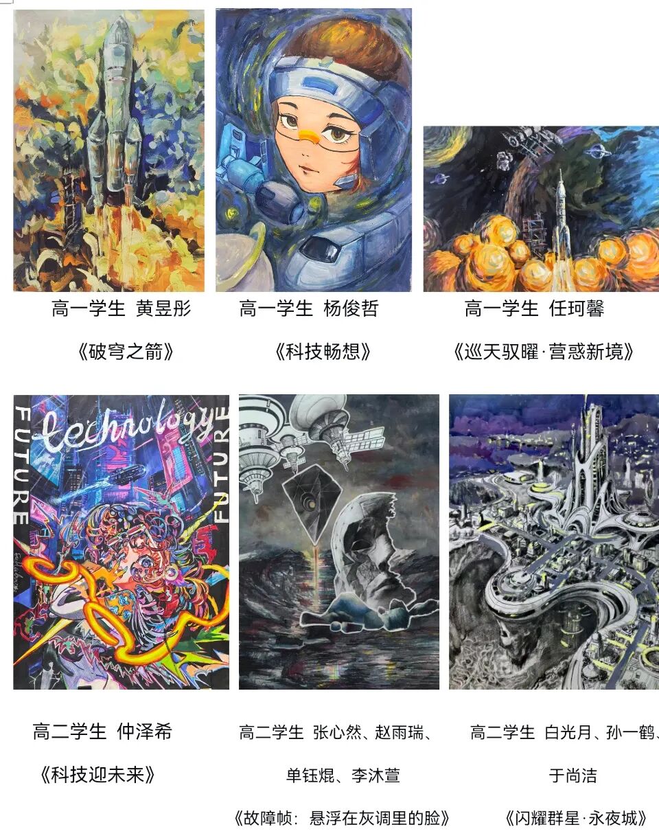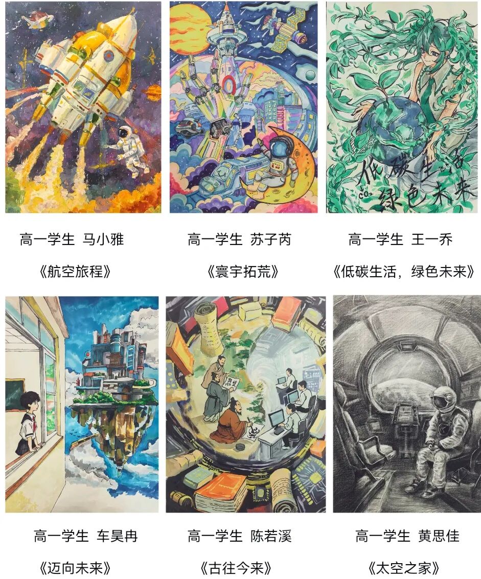 活动自启动以来,得到高一、高二年级学生的积极响应,共征集到优秀科创主题绘画作品20余幅。这些作品题材广泛、形式多样,既有对航空航天、未来城市的科幻想象,也有对绿色生态、美好生活的诗意描绘。同学们或独立构思,或小组协作,用画笔勾勒出一个个充满科技感与艺术美的“强国图景”。
