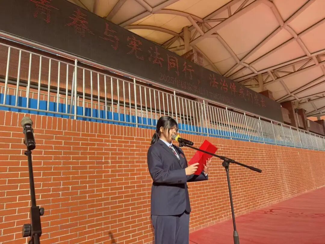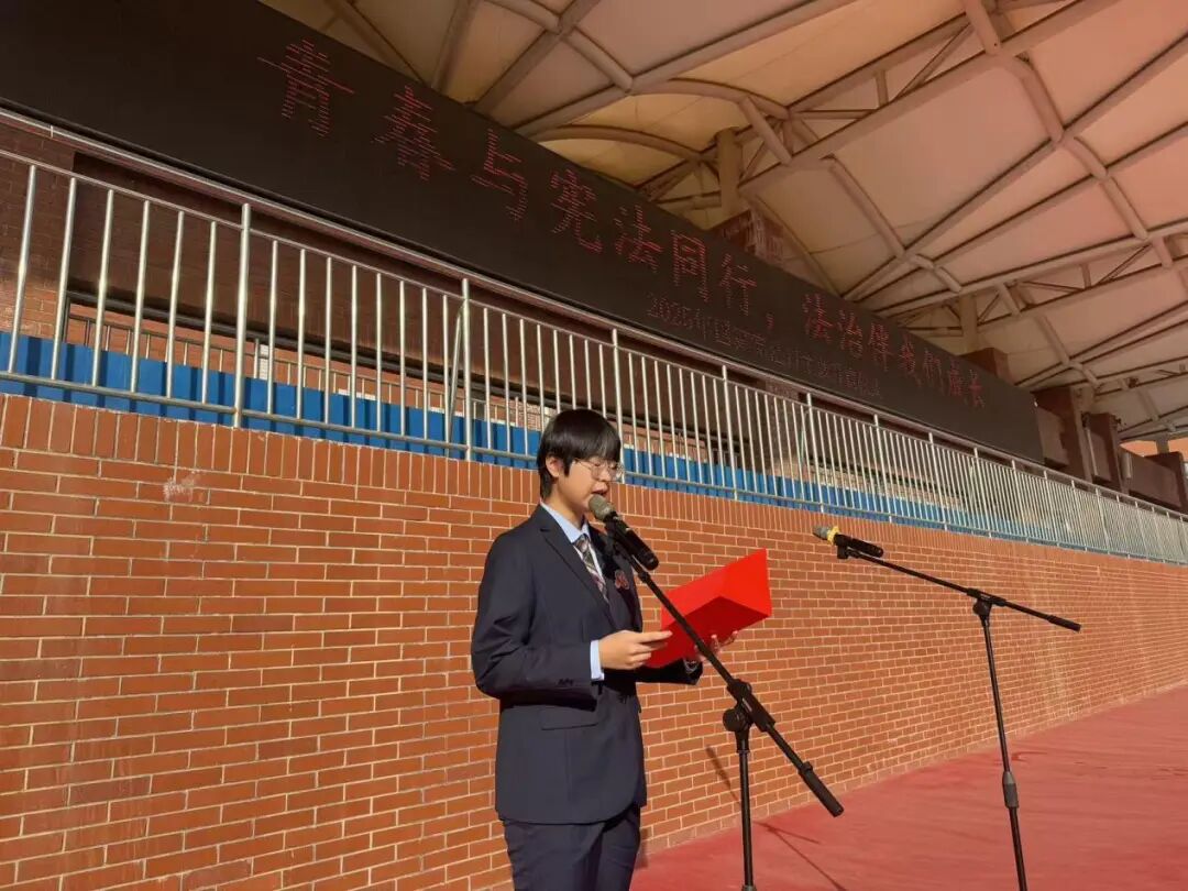 近日,为迎接国家宪法日的到来,济南大学城实验高级中学举行“青春与宪法同行,法治伴我们成长”2025年国家宪法日主题升旗仪式。至善学子校长助理、学生会秘书长孙子诒主持仪式,全体师生参加。