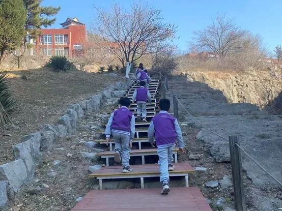 小朋友们漫步在校园大道上,道路两旁的教学楼充满了历史的韵味,红墙黛瓦仿佛在诉说着过去的故事。
